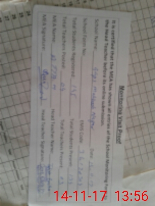 | Attendance Register | Head Teacher | MEA with School | Visit Proof |