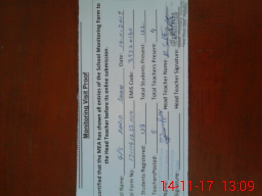 | Attendance Register | Head Teacher | MEA with School | Visit Proof |