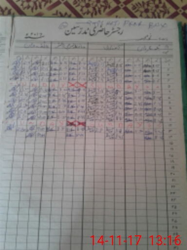 | CNIC | Full Name | Designation | R/C | Absence During Last Calender Month |
