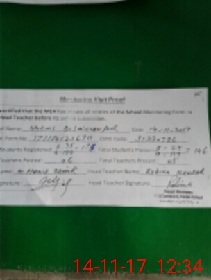 | Attendance Register | Head Teacher | MEA with School | Visit Proof |