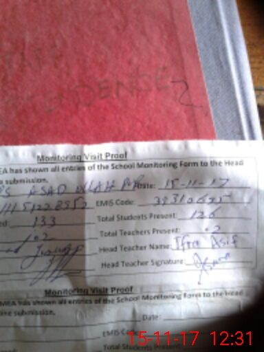 | Attendance Register | Head Teacher | MEA with School | Visit Proof |