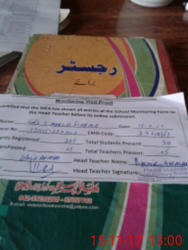 | Attendance Register | Head Teacher | MEA with School | Visit Proof |
