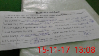 | Monitoring Date: 15-11-2017 | Start Time: 15-11-2017 12:56 PM | End Time: 15-11-2017 01:10 PM | Name of MEA: Mu**** Ak**** Ba**** | |