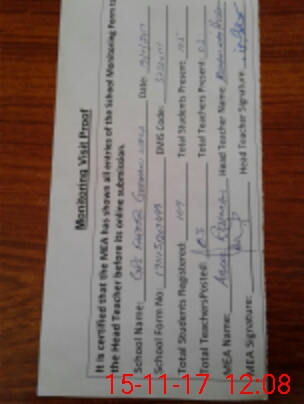 | Attendance Register | Head Teacher | MEA with School | Visit Proof |
