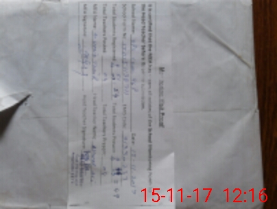 | Monitoring Date: 15-11-2017 | Start Time: 15-11-2017 11:27 AM | End Time: 15-11-2017 12:18 PM | Name of MEA: Mu**** Ha**** Ta**** | |