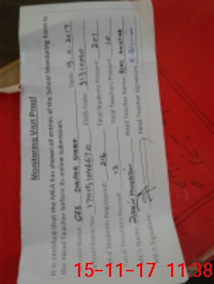 | Attendance Register | Head Teacher | MEA with School | Visit Proof |
