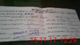 | Monitoring Date: 15-11-2017 | Start Time: 15-11-2017 11:00 AM | End Time: 15-11-2017 12:29 PM | Name of MEA: SH**** AL**** ZI**** (R**** | |