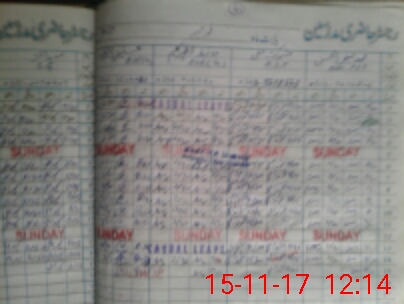 | CNIC | Full Name | Designation | R/C | Absence During Last Calender Month |