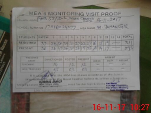 | EMIS Code: 36430057 | Name of School: GHS 55/15-L, MIAN CHANNU | |||