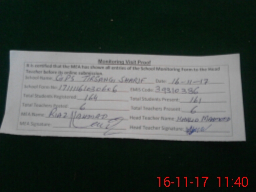 | EMIS Code: 39310386 | Name of School: GPS TARSANGI SHARIF | |||