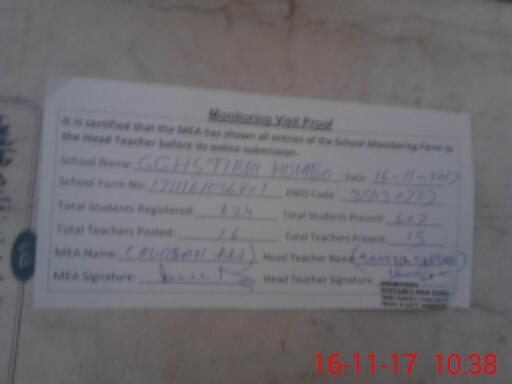 | EMIS Code: 35430727 | Name of School: GGHS TIBBI HUMBO CHAK NO 578 | |||