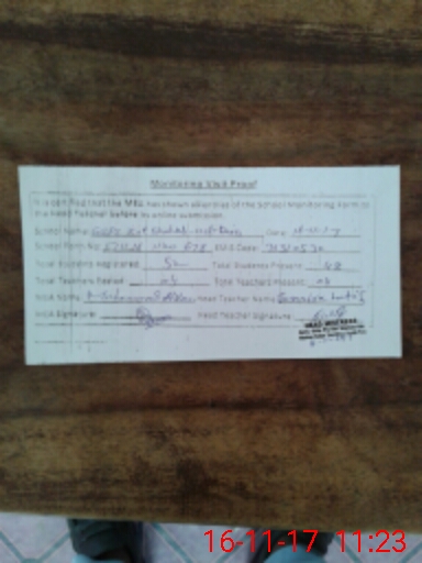 | Attendance Register | Head Teacher | MEA with School | Visit Proof |