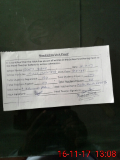 | Attendance Register | Head Teacher | MEA with School | Visit Proof |