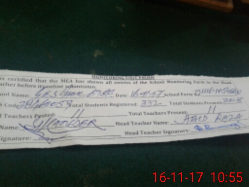 | Attendance Register | Head Teacher | MEA with School | Visit Proof |