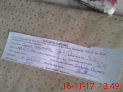 | Name: SH**** PA**** Designation: (School Headmaster's/Headmistress's) PTC/JV Phone/Cell Number: 03**** |