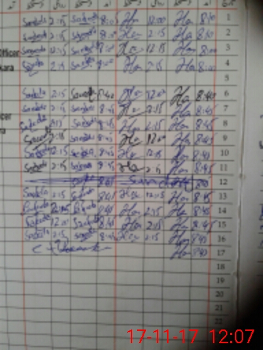 | CNIC | Full Name | Designation | R/C | Absence During Last Calender Month |