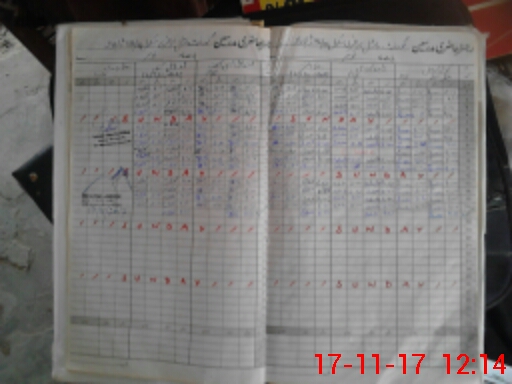 | CNIC | Full Name | Designation | R/C | Absence During Last Calender Month |