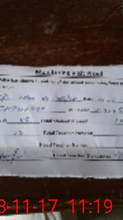 | Monitoring Date: 18-11-2017 | Start Time: 18-11-2017 11:02 AM | End Time: 18-11-2017 11:19 AM | Name of MEA: Ar**** Al**** | |