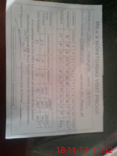 | Attendance Register | Head Teacher | MEA with School | Visit Proof |