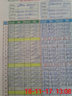 | CNIC | Full Name | Designation | R/C | Absence During Last Calender Month |