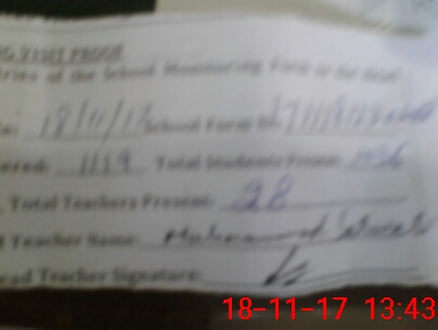 | Attendance Register | Head Teacher | MEA with School | Visit Proof |
