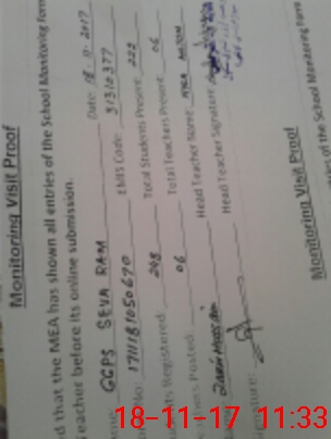 | Attendance Register | Head Teacher | MEA with School | Visit Proof |