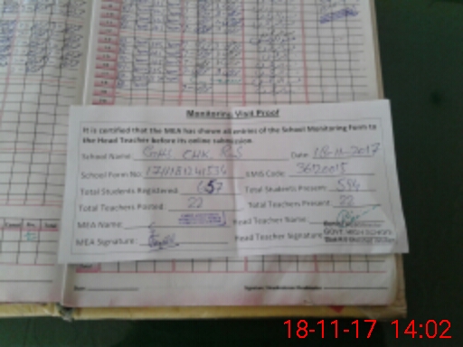 | Attendance Register | Head Teacher | MEA with School | Visit Proof |