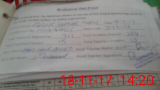 | Attendance Register | Head Teacher | MEA with School | Visit Proof |