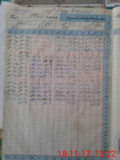 | CNIC | Full Name | Designation | R/C | Absence During Last Calender Month |