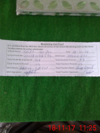 | Certified that this School was Inspected by the Undersigned MEA/DMO Today and the Information Stated Above is as Per Record. | |||||