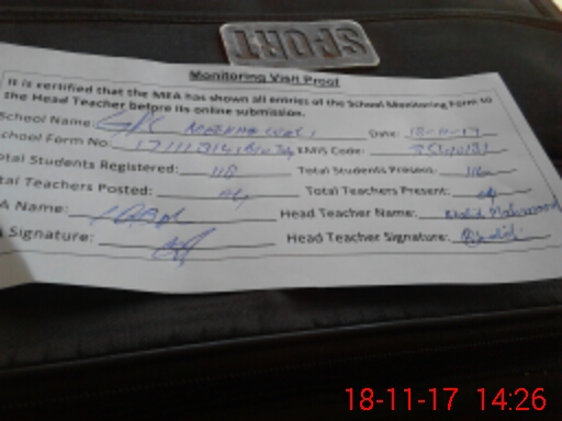 | Attendance Register | Head Teacher | MEA with School | Visit Proof |