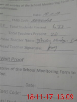 | Attendance Register | Head Teacher | MEA with School | Visit Proof |