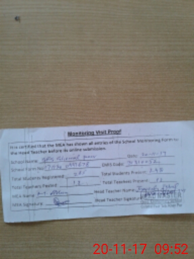 | Attendance Register | Head Teacher | MEA with School | Visit Proof |