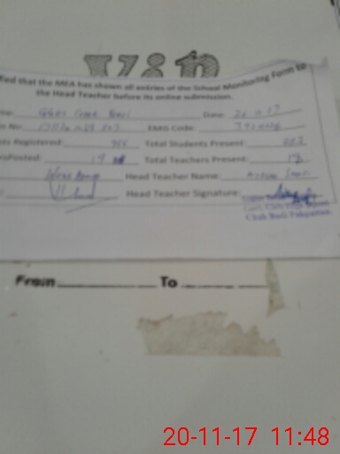 | Attendance Register | Head Teacher | MEA with School | Visit Proof |