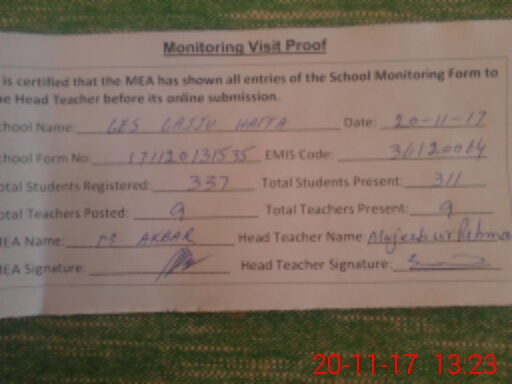 | EMIS Code: 36120064 | Name of School: GES GAJJU HATTA WARD NO 1 P/O SHUJABAD | |||