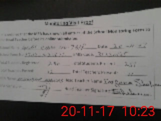 | Monitoring Date: 20-11-2017 | Start Time: 20-11-2017 09:34 AM | End Time: 20-11-2017 10:27 AM | Name of MEA: Mu**** Am**** | |