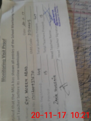 | Monitoring Date: 20-11-2017 | Start Time: 20-11-2017 09:37 AM | End Time: 20-11-2017 10:27 AM | Name of MEA: Za**** Hu**** | |