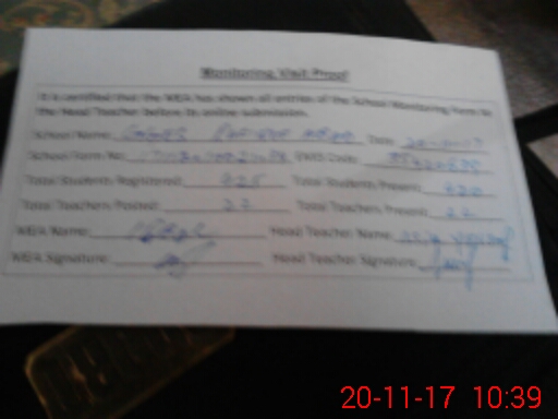| Attendance Register | Head Teacher | MEA with School | Visit Proof |