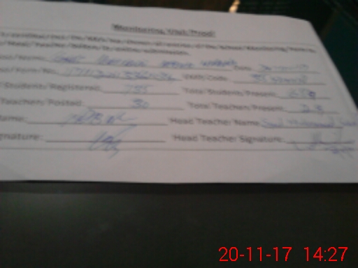 | Attendance Register | Head Teacher | MEA with School | Visit Proof |