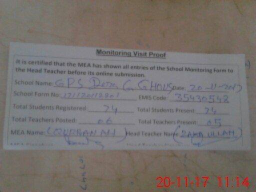 | EMIS Code: 35430548 | Name of School: GPS DERA GHULAM GHOUS | |||