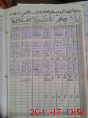 | CNIC | Full Name | Designation | R/C | Absence During Last Calender Month |