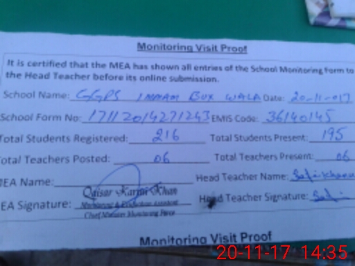 | Attendance Register | Head Teacher | MEA with School | Visit Proof |