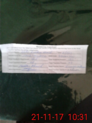 | Monitoring Date: 21-11-2017 | Start Time: 21-11-2017 09:38 AM | End Time: 21-11-2017 10:35 AM | Name of MEA: MU**** AH**** (R**** | |