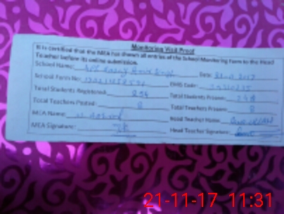 | Attendance Register | Head Teacher | MEA with School | Visit Proof |