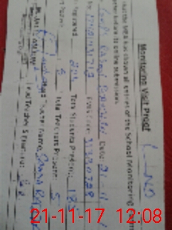 | School Visited by School Health & Nutrition Supervisor (No. of Visits) | 1 | Name1: | ARFAN ALI | Name2: | |