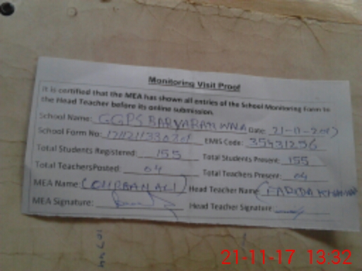 | EMIS Code: 35431256 | Name of School: GGPS BAR YARAN WALA | |||