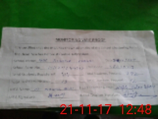 | Monitoring Date: 21-11-2017 | Start Time: 21-11-2017 12:01 PM | End Time: 21-11-2017 12:55 PM | Name of MEA: MU**** NA**** AL**** (r**** | |