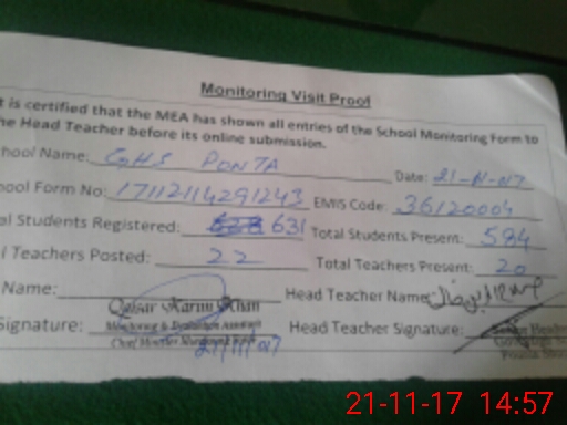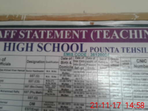 | EMIS Code: 36120004 | Name of School: GHS POUNTA SHUJABAD | |||