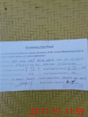 | Attendance Register | Head Teacher | MEA with School | Visit Proof |