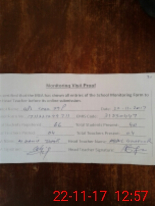 | Attendance Register | Head Teacher | MEA with School | Visit Proof |